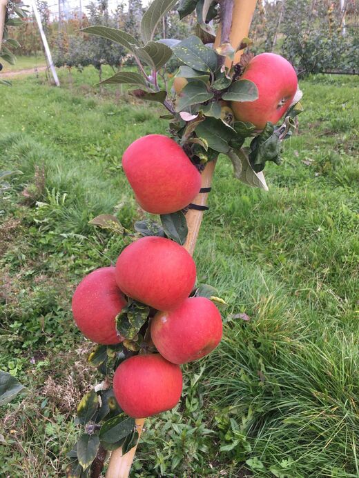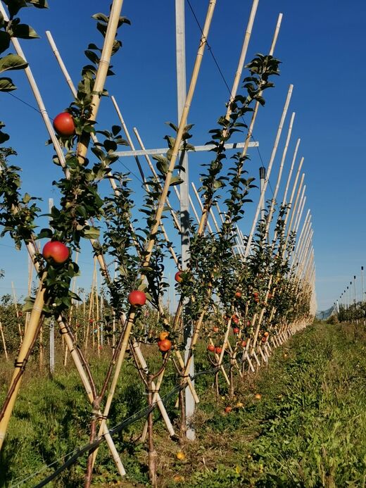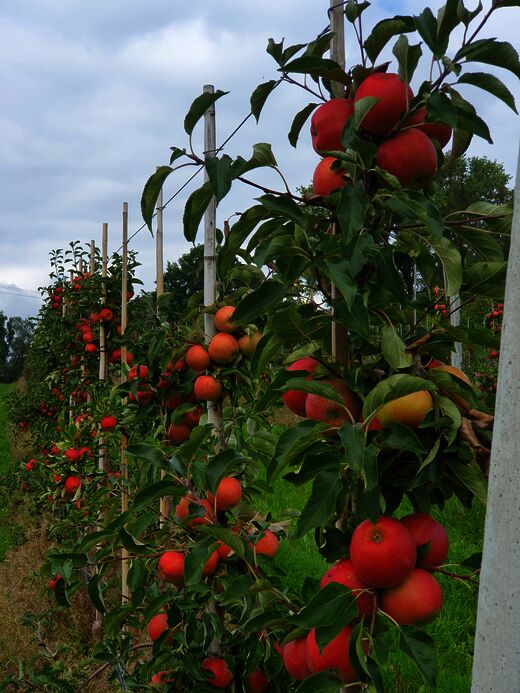 Die Bäume wurden 2020 gepflanzt und erbrachten heuer die ersten nennenswerten Erträge. Eventuell wird auch die alte italienische Sorte 'Gravensteiner', der sich der Lehr- und Beispielsbetrieb bereits vor Jahren wieder zugewendet hat, zukünftig als Herbstsorte ebenfalls unter dem Label „Unser Heimatapfel“ angeboten. Hans Göding: „ Wir müssen irgendwie versuchen, die Kluft zwischen Vergessenwerden, fehlender Wirtschaftlichkeit und mangelndem Kaufinteresse einerseits und einer nicht reproduzierbaren Sortenvielfalt mit eigenartigsten Geschmackseindrücken aufzubrechen. Es kann und darf nicht sein, dass diese tollen, alten Sorten zwischen den Mühlsteinen der eher süßfad schmeckenden Sorten Fuji (asiatischer Marktanteil ca. 65%) oder Gala (angestrebter europäischer Marktanteil 40 %) zerrieben werden und untergehen. Auch die Pflanzentscheidung des Obstbauern im zugegebenerweise eigen gestalteten deutschen Obstmarkt sollte nicht wie in der Vergangenheit zu 2 Dritteln den Sorten Elstar und Jonagold obliegen, sonst erliegen wir hierbei derselben Vereinheitlichung wie weltweit und geben wertvolle Marktanteile preis."