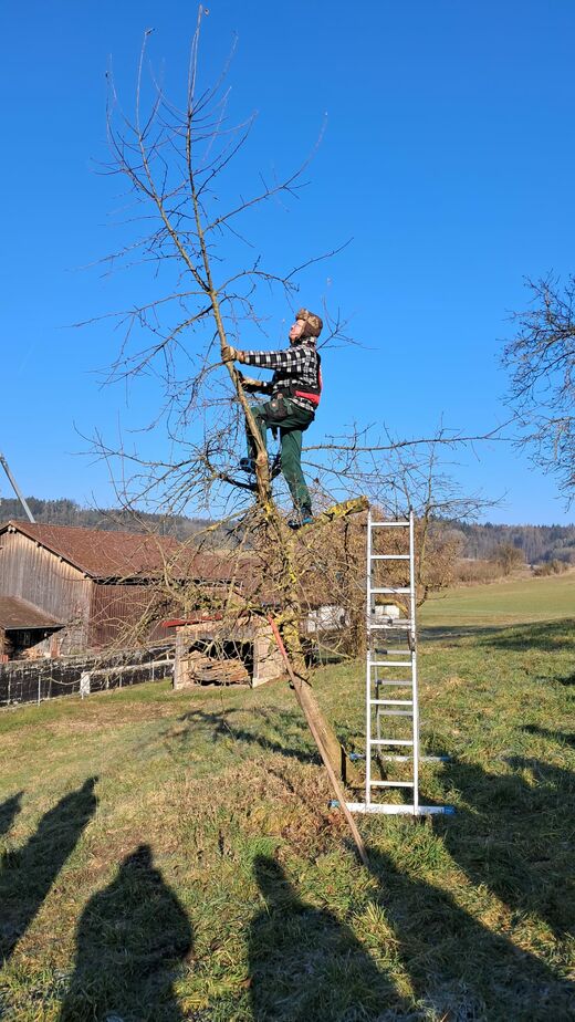 Soweit es der Terminkalender erlaubt stehen Deutenkofener Obstbauexperten auch für externe Fachveranstaltungen und -vorträge zur Verfügung. Im Bild Obstbaumeister Hans Göding beim Praxisschnittkurs des OGV Weng.